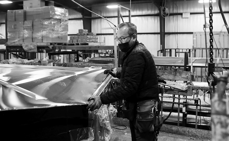 An employee installs an aluminum roof at Look Trailers cargo trailer manufacturing facility in Middlebury, Indiana, the United States, in this file photo. More than 3 million American people have likely retired earlier than they would have otherwise due to COVID-19, according to a latest research by Federal Reserve Bank of St. Louis Miguel Faria-e-Castro.Xinhua |