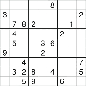 Game rules: Every column, row and box (3×3 marked by heavier lines) must contain all the digits from 1 to 9.