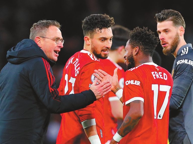 MANCHESTER United started the Ralf Rangnick era with a 1-0 win against Crystal Palace on Sunday as Tottenham crushed Norwich 3-0 to extend its recent revival under Antonio Conte. Leeds struck late to draw 2-2 with Brentford as new Aston Villa manager Steven Gerrard prepared to lock horns with his former boss at Liverpool, Brendan Rodgers, in the late game against Leicester. Rangnick, taking the reins for the first time, named an unchanged side at Old Trafford after United beat Arsenal 3-2 in midweek and was rewarded with a high-energy performance in the first half, backed by a vocal crowd. Cristiano Ronaldo had the hosts’ best chances as Palace initially struggled to get a foothold but the game remained goalless at half-time. United’s performance levels dipped in the second period and Rangnick threw on Mason Greenwood and Anthony Elanga for Jadon Sancho and Marcus Rashford to inject fresh energy into his attack. But it was often-maligned Brazil midfielder Fred who broke the deadlock, curling home a superb strike past Palace goalkeeper Vicente Guaita from outside the box after a pass from Greenwood. The three points lifts United to sixth place in the table, three points behind fourth-placed West Ham. Spurs are one point ahead of United with a game in hand after cruising to a 3-0 win against bottom side Norwich — their third straight victory in the Premier League. Lucas Moura opened the scoring in the 10th minute. After a nice piece of skill to round a Norwich defender, he played a one-two with Son Heung-min, turned his marker and thundered an unstoppable drive into the top corner from 20 meters. Tottenham doubled their lead midway through the second half when Davinson Sanchez smashed home a loose ball from a corner. Son made it 3-0 in the 77th minute with a fine goal as Ben Davies and Oliver Skipp combined before the South Korean fired into the bottom corner. Conte took over from the sacked Nuno Espirito Santo early last month, with Spurs languishing in mid-table after a poor run of results and is starting to make an impact. (SD-Agencies) |