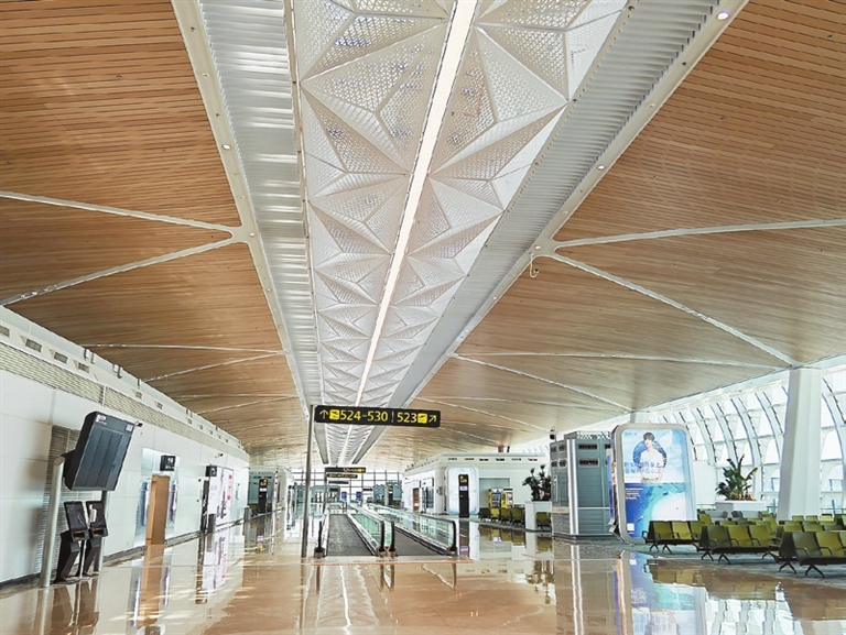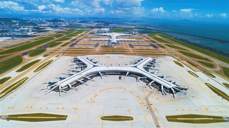 THE satellite hall of Shenzhen Bao’an International Airport started its official operation Tuesday. The X-shaped satellite hall, located to the north of Terminal 3 (T3), is designed to handle 22 million passengers a year. It operates interdependently with T3 through a rapid transit system and serves auxiliary functions. It has 53 boarding bridges — 42 standard ones and 11 flexible ones. The 240,000-square-meter facility is a five-story complex where each floor has a specific function. (SD-Agencies) |