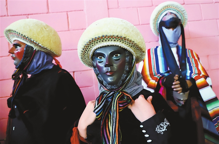 People wearing Parachico traditional dance costumes gather during the Chiapas Grand Festival in Chiapa de Corzo in the southern Mexican state of Chiapas on Saturday. Hundreds of Parachico dancers came out on the streets, amid an atmosphere of hope after a difficult year because of the COVID-19 pandemic. Dancers wore a wooden mask and a colored poncho-style clothing called “sarape.” On the head they wore a “montera,” which is a kind of helmet decorated in a way that resembles the blond hair of the Spanish people during colonization.SD-Agencies |