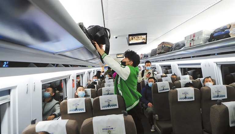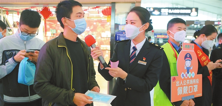 SHENZHEN’S transport terminals hope for a safe and stable Spring Festival travel season that officially started Monday by implementing strict COVID-19 prevention measures and improving its services.The annual Spring Festival transport season will last 40 days until Feb. 25. During this period, Shenzhen North Railway Station will operate 285 pairs of trains a day, 24 pairs more year on year, including 43 pairs running along the Ganzhou-Shenzhen High-Speed Railway. (SD-Agencies) |