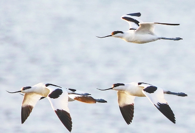 Shenzhen hosts dozens of migratory bird species during the winter months, and if you have been to the Shenzhen Bay Park area to observe them, you might have come across the fabulous pied avocets. The pied avocet (Recurvirostra avocetta), measuring 45 cm long, has long thin legs. The birds move their curved pointy beak (about 8 centimeters) from side to side in shallow waters, using it as a shovel in search of small invertebrate animals like insects and crustaceans hiding in the mud. The word “pied” in animals is generally associated with having black and white colorations, and the pied avocet is aptly named. Its entire body is covered by white feathers except that it has a black cap over its head, black feathers on the tip of the wings and also a black tail. Pied avocets start their breeding season around April and it continues until August. During that time, they build their nests in large colonies on open areas covered with short vegetation. They will normally lay up to four eggs per clutch that both parents will incubate for about three to four weeks. Chicks are precocious and ready to go on their own really quick. Migration is important for the survival of the species and it’s our job to help in the preservation of their habitats. That way, they can enjoy the warm shores of our city every winter for many years to come. 2021.12.24 A pied avocet is searching for prey in the Shenzhen Bay area in Nanshan District. |