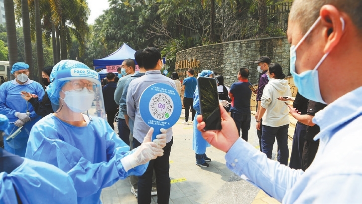 Yang Mei yangmei_szdaily@163.com NUMEROUS medical staff, community workers, Chinese and international volunteers across Shenzhen have joined the task forces to help the city combat the latest wave of the COVID-19 pandemic. Clad in white and blue protective suits or wearing red vests, they are seen busily working at nucleic acid testing sites and residential compounds to help residents scan the QR codes for testing, maintain good order to make sure that everyone follows health protocols properly, deliver groceries and daily necessities to those restricted to their homes, and so forth. According to Nanshan International Cultural Exchange & Service Center (NSIC), a team of over 70 Chinese and international volunteers has been formed in Zhaoshang Subdistrict of Nanshan District, including residents from China, the United States, Mexico, Belgium and India. Shekou Subdistrict and Zhaoshang Subdistrict in Nanshan, Shenzhen’s two largest expatriate communities, are designated as prevention areas. Shortly after several COVID cases were reported in Nanshan, NSIC created a WeChat group to recruit volunteers and has seen active sign-ups. Volunteers are required to present 24-hour negative nucleic acid test results. |