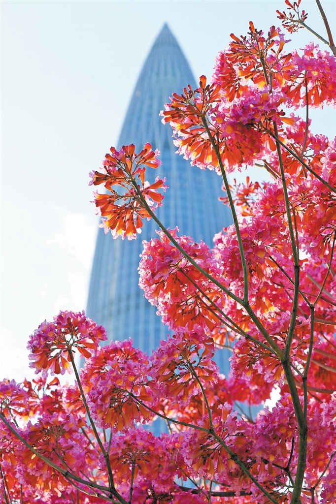 SPRING flowers are in full bloom across Shenzhen, adding to the beauty of the city even when most people stay at home to cut off the transmission of the virus. Due to the latest round of COVID-19, Shenzhen residents have been placed into seven days of “slow living.” With buses off the roads and some businesses not in operation, the city is quiet and empty, but various flowers, such as bougainvillea, kapok and mealy blue sage, are fully in bloom. They offer a visual treat, brighten the day for frontline workers and are patiently waiting for the sightseeing locals and travelers to enjoy the flowers’ beauty after the lockdown is over. (SD News) |