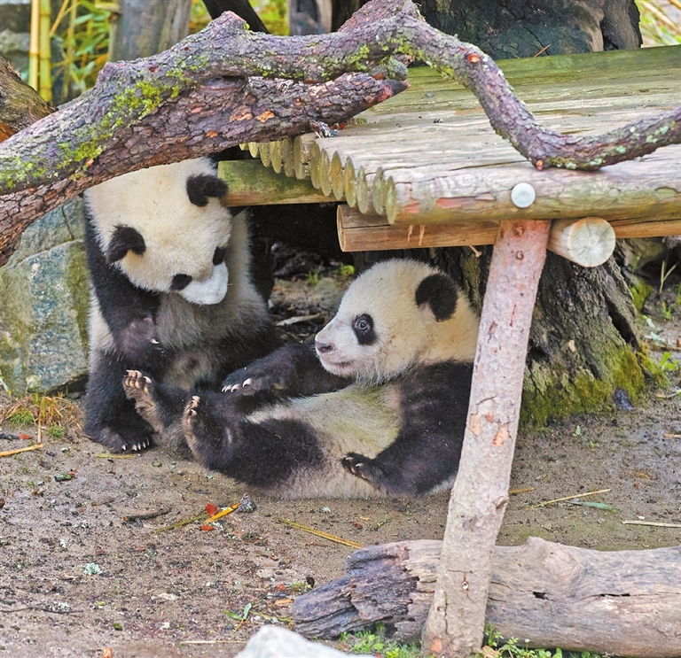 Giant panda twins You You and Jiu Jiu born in Madrid Zoo Aquarium, Spain, make their first public appearance Monday. The event coincided with the opening ceremony of the zoo’s 50th anniversary celebrations. The twins, born to Hua Zuiba, a female panda and her partner Bing Xing last September, are now about six months old and set to be the zoo’s main attraction. Xinhua |
