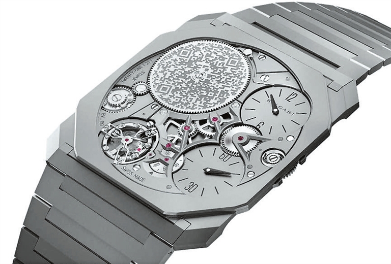 “IF you’re going to spend a princely sum on a timepiece, you probably want something big, heavy, and complicated that won’t go unnoticed on your wrist,” which is why the new Bulgari Octo Finissimo Ultra is such an odd duck. It’s engineered to disappear on your wrist. The matte gray arm chronometer just claimed the record for the world’s thinnest mechanical watch. Like digital camera megapixels, vehicular horsepower, or the number of polygons a game console can render on screen in real time, there’s an ongoing war amongst luxury watchmakers when it comes to making mechanical wristwatches. Unlike megapixels and horsepower and polygons, which go up, watchmakers are trying to pack a watch into as few millimeters as possible. That record was held by Piaget, whose Altiplano Ultimate Concept watch impressed the horological community back in 2018 with a thickness of just two millimeters. Four years later, Bulgari has snatched that crown from Piaget’s head with its new Octo Finissimo Ultra, which measures just 1.88 mm thick. For comparison, a standard U.S. quarter is 1.75 mm, and two stacked credit cards comes in at 1.52 mm. Unlike the Piaget Altiplano Ultimate Concept, which was, as the name implies, just a concept and too frail to be worn and used day to day, Bulgari is actually producing 10 of the Octo Finissimo Ultras, which include a highly visible QR code on the face that links to NFT artworks intended to be used as authentication for each piece. To shrink everything down that thin, Bulgari’s watchmakers had to integrate all of the Octo Finissimo Ultra’s 170 components into the watch’s case instead of installing the mechanical parts one by one. To make the timepiece strong enough to not bend and flex like a credit card, its 40 mm-wide case is made from sandblasted titanium, while the back is made from tungsten carbide: a material that’s also used to make industrial drill bits. Unlike a more traditional, perpendicularly mounted crown on the side of the watch, the wearer adjusts the time and winds the spring that powers the mechanical movement with two equally thin thumbwheels located on either side. On a full wind, the Octo Finissimo Ultra has a 50 hour power reserve. The world’s thinnest mechanical watch costs US$440,000. (SD-Agencies) |