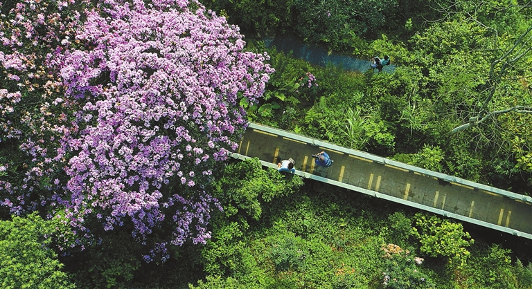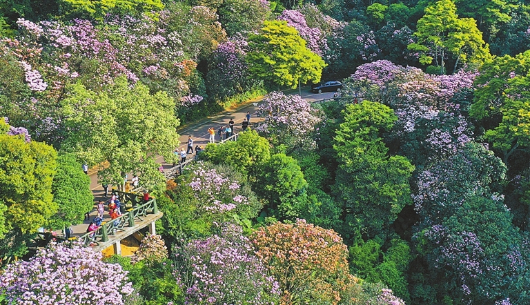 AS commonly seen flowers in China, the rhododendrons not only decorate the spring scenery but are also admired in ancient and modern Chinese poems, thanks to their charming beauty. Now more than 100,000 trees of rhododendron moulmainense are in full blossom on Wutong Mountain where an annual flower fair is being held through mid-April. According to the Seventh Rhododendron Moulmainense Fair of Wutong Mountain profile, an ecological conservation of rhododendrons has been carried out for more than 10 years in the mountain and over 700 species have been introduced. Rhododendron moulmainense on Wutong Mountain is the world’s only native highland rhododendron grown in a metropolis. The landscape of the brightly colored flowers has made the mountain a landmark in Shenzhen every spring. Visitors have easy access to climb the mountain via various trails after they get off the Metro at the Wutong Mountain South, Haishan or Shenwai Senior Campus stations. All visitors must show their negative nucleic acid test results issued within 48 hours. You are also invited to attend a photo or short video contest organized by the mountain; details of the contest with cash prizes can be found on the WeChat account “梧桐山風景區”; the submission deadline is April 13. (Cao Zhen) |
