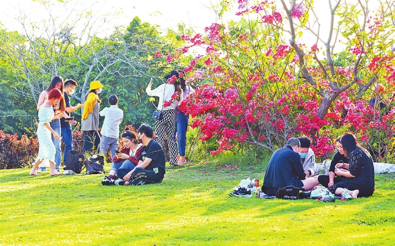 SPRING flowers are in full bloom across Shenzhen and it’s the time to enjoy the flowers’ beauty and have spring outings in bright sunshine. Parks in the city are opened and all visitors must show their negative nucleic acid test results issued within 72 hours. (SD-Agencies) |