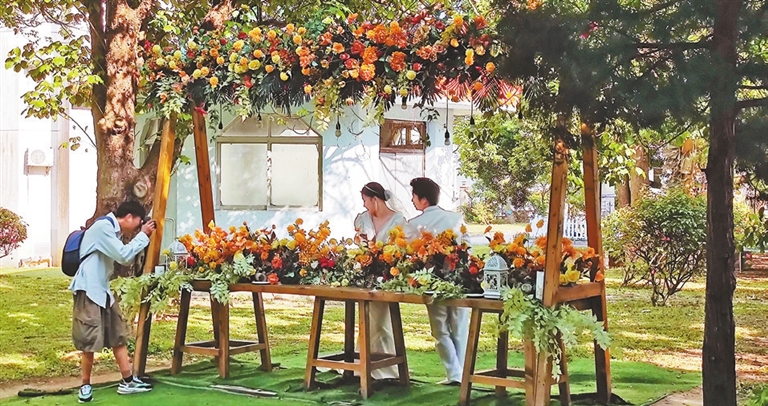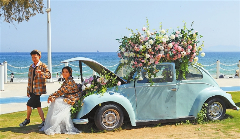 TAKING outdoor wedding photos in bright spring sunshine is the popular event recently. Lovers’ Island, which enjoys great sea views and has unique wedding decorations becomes the attraction for the newly-weds. The photos were taken at Lovers’ Island at Xichong, Dapeng New Area on Sunday.(SD-Agencies) |