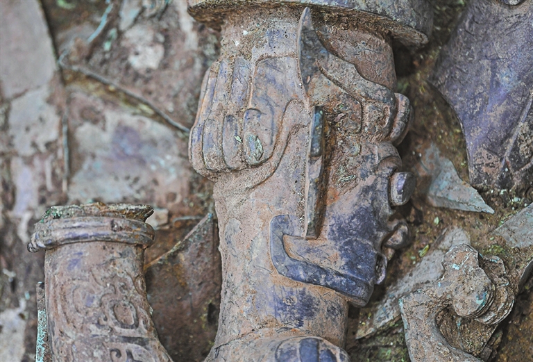 CHINESE archaeologists have recently made some stunning discoveries at the famed Sanxingdui Ruins in Sichuan Province, according to a press conference at the Sanxingdui Museum yesterday. Ran Honglin, from the Sichuan Provincial Cultural Relics and Archaeology Research Institute, said that 3,155 cultural relics in complete structure, including 1,238 pieces of bronzeware, 543 gold artifacts and 565 jade artifacts, have been recovered from the six new pits, offering many new clues to decode the ancient Shu Kingdom civilization. Ran said new carbon-dating results on about 200 relics in the pits ranged from 1131 B.C. to 1012 B.C., meaning most of the pits were from the late Shang Dynasty (1600-1046 B.C.). “The question of its age, which had been bothering us over the past 30 years, has been solved,” Ran said. The 13,000-sqm sacrificial area in Guanghan City, around 60 kilometers from Chengdu, includes pits No. 1 and 2 excavated in 1986 and the six pits newly discovered between 2020 and 2022. Now, field excavations of pits No. 3 and 4 have been completed, and pits No. 5 and 6 are undergoing laboratory archaeological cleaning. The new finds are mainly excavated from the No. 7 and No. 8 pits, bringing the total number of items discovered in the six pits at Sanxingdui to nearly 13,000, according to the Sichuan Provincial Cultural Relics and Archaeology Research Institute. The excavations were carried out by the institute, Peking University, Sichuan University and other research institutions and universities. A bronze box with a green jade ware inside, which was discovered in the No. 7 pit, is a highlight among the newly found artifacts. The top and bottom of the vessel are covered with tortoise-shaped reticulate lids, and the sides of the box are adorned with a bronze hinge, handles shaped as dragon heads and a few bronze streamers. Microtrace analysis revealed that the box was wrapped in silk. “It would not be an exaggeration to say that the vessel is one of its kind, given its distinctive shape, fine craftsmanship and ingenious design. Although we do not know what this vessel was used for, we can assume that ancient people treasured it,” said Li Haichao, a professor at Sichuan University who is in charge of the excavation at the No. 7 pit. Jade wares and bronze decorations, figurines and bells were also found in the pit. “We had never seen something like these, and we even don’t know how to describe their patterns or shapes in short words,” Ran said. “It’s also confusing for us to speculate how they were used before further studies. But these artifacts feature a mixture of typical local styles of cultural relics as well as those from the Central China Plains at that time,” he explained. “It demonstrates through close communications, the ancient Shu culture became a key part in early Chinese civilization.” In the adjacent No. 8 pit, archaeologists unearthed a variety of artifacts including bronze heads with gold masks, a bronze sculpture with a human head and snake body, a bronze altar, a giant mythical creature made of bronze and a dragon-shaped bronze item with a pig nose. “The sculptures are very complex and imaginative, reflecting the fairy world imagined by people at that time, and they demonstrate the diversity and richness of Chinese civilization,” said Zhao Hao, an associate professor at Peking University who is head of the excavation of the No. 8 pit. Around the pits, archaeologists also found ash ditches, architectural foundations and small sacrificial pits, and cultural relics, as well as bamboo, reeds, soybeans, and cattle and boars that may have been sacrificed. Even with the volume of discoveries, Sanxingdui still has more surprises to offer. For example, no physical evidence of silk from 3,000 to 4,000 years ago was previously found in Southeast China. But about 20 artifacts in the ongoing excavation in Sanxingdui were found to once be covered by silk. Research into plant and animal remains among burned ashes in pits could also help people better know the natural environment of Sanxingdui’s time. Originally discovered in the late 1920s, the Sanxingdui Ruins have been dubbed as one of the world’s greatest archaeological findings of the 20th century. The ruins are believed to be the remnants of the Shu Kingdom. (Xinhua, China Daily) |