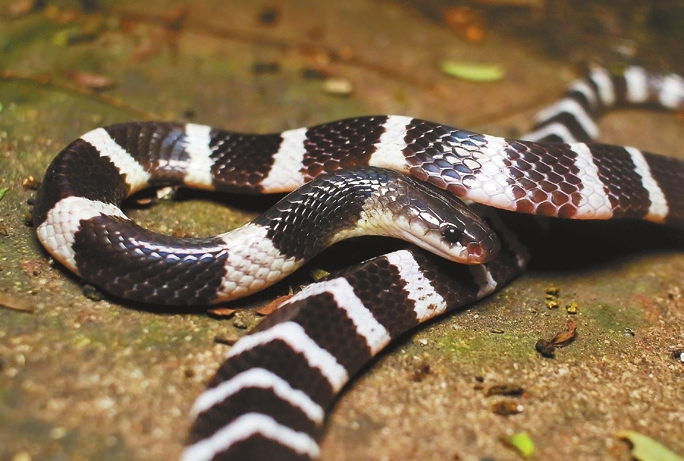 Considered the most venomous snake in China, the many-banded krait (Bungarus multicinctus) is as beautiful as it is lethal. Capable of growing up to 1.5 meters in length, this small snake possesses a highly toxic venom with the ability of paralyzing the regular functions of its victim’s body, leading to a quick death of its prey. This species’ venom even has its own name, the bungarotoxin, named after this amazing family of reptiles. This fascinating snake is covered by a striking bright black and white banding pattern, where the black bands gradually decrease in width from head to tail. The beautiful white bands have given this species the common name of “silver rings,” as addressed by local people, which in my opinion is a better name for it. Its black head is not big or prominent as in other types of snakes; the tail is very short and thinner than the body; and the bands are incomplete on the ventral part of the animal. Therefore, the snake has a whitish grayish belly. The many-banded krait is active during the night when it has a predominant presence in its territory in search of frogs, lizards or even other snakes. In spite of their high lethality, this amazing animal is not at all aggressive. Its primary reaction when spotted by humans is to flee the scene or continue its way to safety. Even when feeling threatened, it will try to hide its head beneath its body in order to protect it. The many-banded krait has a similar appearance to a non-venomous snake called the wolf snake. It is not recommended to approach them or handle them at all. All animals in their habitats should be left alone and we should provide them with our protection for the healthy development of our natural ecosystems. |