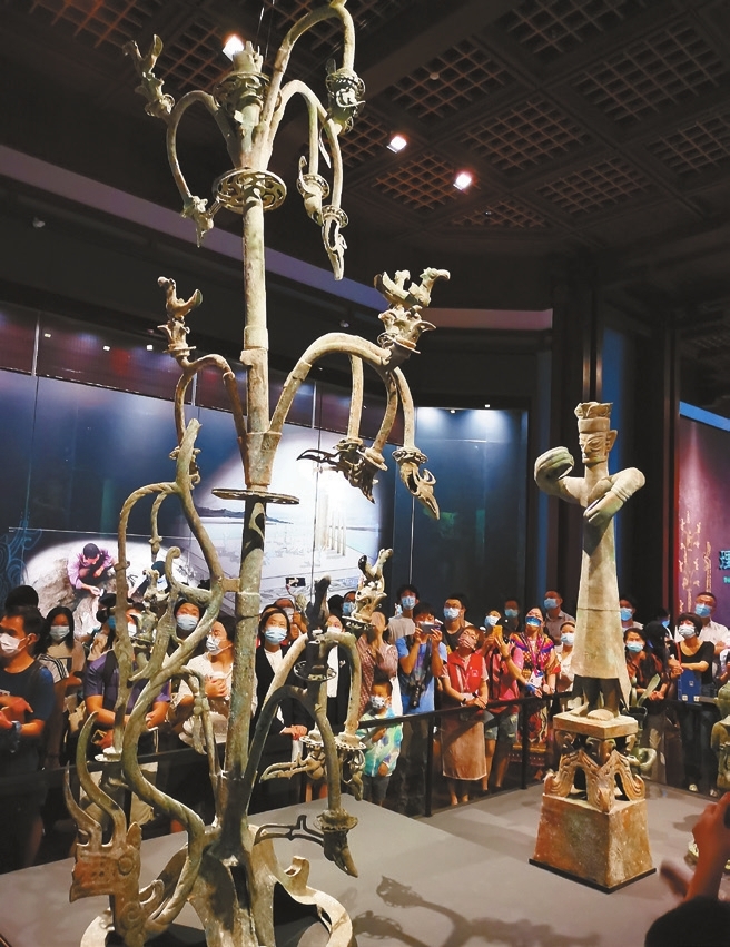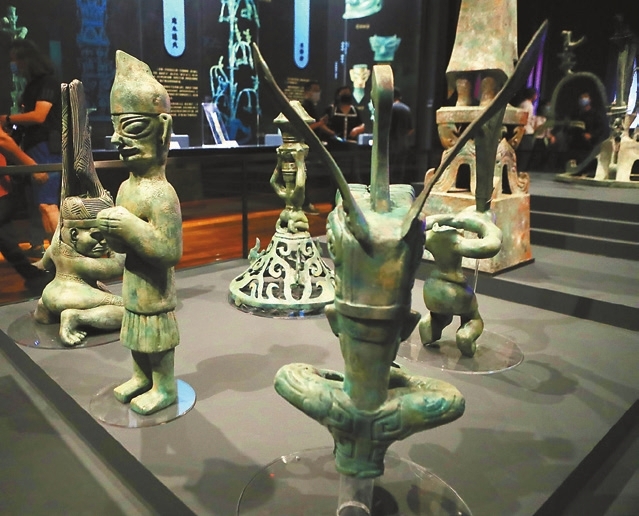 Cao Zhen caozhen0806@126.com NEW findings in the mysterious Sanxingdui Ruins in Sichuan Province in June generated excitement, as the question of the sacrificial pits’ age has been solved according to 200 relics’ carbon-dating results. They were from the late Shang Dynasty (1600-1046 B.C.) and some artifacts’ design styles demonstrate close communications between the ancient Shu Kingdom and Central China. The south part of the 12-square-kilometer Sanxingdui Ruins in Guanghan City, around 60 kilometers from Chengdu, includes sacrificial pits No. 1 and 2 excavated in 1986 and six more sacrificial pits discovered between 2020 and 2022. The ruins are believed to be the remnants of the ancient Shu Kingdom dating back more than 3,000 years. Among thousands of unearthed relics, many are one of a kind, given their distinctive shapes, fine craftsmanship and ingenious designs. Without traces of human remains in the pits, archaeologists believe they were sacrificial areas but due to lack of official historical records of Shu Kingdom, how the sacrifices were carried out and what these artifacts were specifically used for are still unknown. Now a small exhibition interpreting Sanxingdui opened at the Shenzhen Museum’s ancient art division last Friday. Through the relics on loan from Sanxingdui Museum and Jinsha Museum in Sichuan Province and 3D-printed replicas of Sanxingdui’s star items, the exhibition replicates a sacrificial scene based on archaeologist Tang Jigen’s research. Tang, a professor of Southern University of Science and Technology in Shenzhen, has led the excavation and research in Yinxu, the last capital of the Shang Dynasty in modern Anyang, Henan Province, for 25 years. With his expertise in the Shang Dynasty civilization and observation of the Sanxingdui relics, Tang strives to approach the most likely historical truth about sacrifices in Shu Kingdom. In his research published in a journal last year, he states that some of Sanxingdui’s star relics — the Bronze Standing Figure, the Bronze Sacred Tree and the Vertical-eyed Bronze Mask, as well as several small bronze figures — form a grand sacrificial scene. “The 1.38-meter-wide Vertical-eyed Bronze Mask and other bronze masks with almond-shaped protruding eyeballs represent the ancient Shu rulers being worshiped in sacrifices because the masks are very big with square holes on the forehead and the temple, which means they might by hung high above the ground, and their bizarre eyes, ears and mouths reflect superpower,” said Tang. The Vertical-eyed Bronze Mask excavated in 1986 is one of Sanxingdui’s most eye-catching items due to its two protruding cylindrical eyeballs of 16 centimeters in a manner of extreme exaggeration. Its two ears are fully out-stretched and its nose looks like an eagle’s beak. Its mouth is carved as broad as furrows, forming two uplifting curves reaching to the ears, as if it is smiling enigmatically. Most archaeologists believe the mask symbolizes Can Cong, the first king of the Shu, whose appearance was described in folk stories in some ancient books. “Sacrifice is a ritual so participants who carried out sacrifices must possess some postures. The 2.61-meter-tall Bronze Standing Figure has a solemn facial expression and a posture in which it seems to be holding something, perhaps an ivory, so most archaeologists believe it must be the officiant in sacrifices facing the Vertical-eyed Bronze Mask. Other shorter bronze figures in various postures were participants in sacrifices, placed behind the Bronze Standing Figure,” said Tang. Due to its body height, the Bronze Standing Figure excavated in 1986 is regarded by archaeologists as the “highest” leader in rituals. This elongated figure appears to be holding something in its two hands, like a shaman performing a religious ceremony. There are several speculations of his identity. Some experts believe he was a king, while others think that he was a priest, or a mixture of deity, wizard and king. The Bronze Sacred Tree is another colossal and enigmatic object in Sanxingdui. It took 10 years for archaeologists to reassemble the now 3.96-meter-tall bronze tree which was excavated in 1986. Experts believe it reflects the ancient Shu people’s communication with deities or heaven. “The Bronze Sacred Tree stands between the Vertical-eyed Bronze Mask and the Bronze Standing Figure to form a connection. Hundreds of deliberately broken or burned jade, shells, tiger teeth and ivories were sacrificial items because these were precious objects. The act of destroying and burning them was part of the sacrifices,” said Tang. “There are also bronze human heads with or without gold masks found in Sanxingdui and I believe they represent tribal chiefs because some have braided hairstyles, but we still couldn’t know their roles and standing places in the sacrifices,” Tang added. Sanxingdui is deemed a limitless archaeological treasure trove with mysteries that still exist even as new discoveries emerge every few years. The pottery, jade, gold and bronze wares unearthed from Sanxingdui also reflect the exquisite craftsmanship and smelting techniques of the people in the ancient Shu Kingdom. These silent relics speak to us and show how much there is to learn and to discover. Dates: Until Oct. 23 Tickets: Free Booking: WeChat account “iszbwg” Venue: Shenzhen Museum (of Ancient Art), Futian District (福田區深圳博物館古代藝術館) Metro: Line 9 to Hongling South Station (紅嶺南站), Exit A |