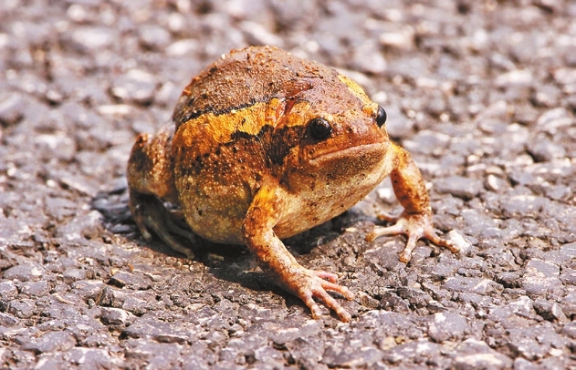 The Asian painted frog or banded bullfrog (Kaloula pulchra) is a medium-sized frog of about 7.5 centimeters in length. It has a tiny head with a rounded snout and a rounded, broad, robust body covered in dark brown. This amphibian is named “banded” (or “painted”) for the two well-defined dark orange stripes that go from the face to the groin. One of the most remarkable characteristics of this frog is that when threatened, it will inflate its body to look bigger and stronger, so attackers may be discouraged from attacking. However, this behavior becomes futile in the face of big predators like egrets or snakes. Aside from their ability to inflate their bodies, these fascinating frogs also secrete a sticky, milky substance that can be disgusting for the palate of predators, which prefer instead to feed on other frog species. These fabulous frogs are nocturnal and spend their daytime hiding under dead litter or inside tree trunk holes. They prefer places near water sources, and their reproductive time starts with the rainy season, when males become noisy. They make deep, loud calls while floating in the water along with other males, and their calls can be heard from quite a distance. Kaloula pulchra individuals love feeding on ants, and they are always on the lookout for a good spot where an ant parade is passing. They will find a comfortable position and then start feasting on the insects by spreading out their broad sticky tongues and eat until they are satisfied. Like other frog species, Asian painted frogs have been introduced to several countries including the Philippines, where they have become an environmental problem. It is essential to take care of local species. It is also vital to respect every ecosystem, preserve them the way they are meant to be, and be cautious about introducing non-native species. |