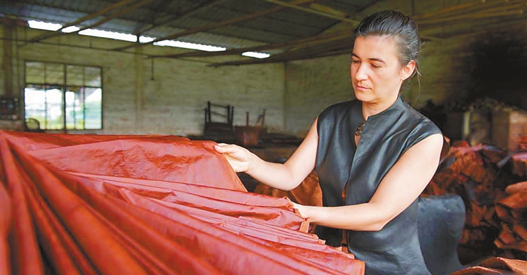 WEARING a beautiful fragrant cloud gauze costume designed by herself, Kathrin von Rechenberg chatted with neighbors in a hutong in the Qianmen area of central Beijing. Born in Munich, Germany, Rechenberg was so captivated by this delicate, classic Chinese silk at first sight that in 1999 she came to China in search of it. Finding this fabric was, however, more difficult than she had anticipated. About a year later, she and her husband Zhang Xiangyun found some fragrant cloud organza weaved in the 1960s and dyed in the 1980s at a time-honored store in the Qianmen neighborhood, where she later set up a clothing studio. Rechenberg was born into an artistic family and was greatly influenced by both her grandfather and father, who were engaged in the field of art. After studying tailoring in Germany, she went on to pursue costume design in France. She worked with a number of famous brands such as Chanel and Christian Dior after graduation. “The fragrant cloud organza, also known as gambiered gauze, is a handwoven, plant-dyed fabric with a long and profound history in Guangdong Province. As its production involves significant time and unique techniques, the organza is rare and precious,” Rechenberg said. To learn more about this silk and seek design inspiration, she paid multiple visits to a dyeing plant in Guangdong’s Shunde. “The dyestuff is extracted from the dioscorea cirrhosa, in which the tannic acid generates a variety of colors such as maroon, tawny and coffee through chemical reactions,” she said. Zhang said the production of fragrant cloud organza involves more than 30 times of dyeing and natural drying at each interval, while the last step is to cover the fabrics with mud so that the latter’s rich iron elements can react with the tannic acid and silk fiber to change the colors. “After the dyeing, the organza needs to stand for years before the entire process is completed and it can be used, making the silk even more valuable,” Rechenberg said, adding that such fabrics nourished by the natural soil, water and sunshine have a unique vitality and becomes a fabric that can “breathe.” The natural dyeing process is a prominent feature of fragrant cloud organza, and Rechenberg has always insisted on sticking to originality in her designs. She draws inspiration from geometric lines and architectural shapes and reduces unnecessary tailorings to preserve the original art design as much as possible. The dyeing technique of fragrant cloud organza was inscribed on China’s national intangible cultural heritage list in 2008, bringing the fabric to the attention of more people. Rechenberg was awarded the title of friendship ambassador of China’s textile intangible cultural heritage in 2020. “I have gained a better understanding of the traditional Chinese culture over the past two decades in China and learned to pursue harmony with nature,” she said. (Xinhua) |