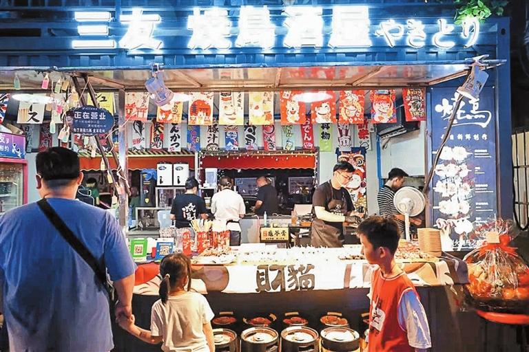 Wang Jingli wangjingli0715@163.com WHEN the sun goes down, a night market in Yantian District lights up the sky with crowds of people queuing for luscious delicacies. Located at the Yantian International Creative Harbor in Shatoujiao Subdistrict, the small Hong Kong Night Market, reportedly Shenzhen’s first night block featuring Hong Kong cuisine, officially opened to the public Saturday after a trial operation. Jointly created by a group of beginning entrepreneurs from Shenzhen and Hong Kong, the 10,000 sqm market accommodates some 40 stalls offering over 200 varieties of Hong Kong food. A fun place to relax A citizen surnamed Lin told Shenzhen Daily that he enjoys the market’s lively atmosphere. The whole environment is also very clean, so it is a good way to let off some steam, Lin added. Another resident surnamed Chen who lives nearby said it is a good place to spend the night with friends. In addition to tasty foods, people can also enjoy music performances at the market, which in the eyes of some of the people interviewed by the reporter is an extra reason that attracts them. Liao Jiating, designer of the night market, said that the original idea was to create a Shenzhen-Hong Kong consumption area integrating elements of the two cities. Since its trial operation was launched June 22, the market has seen a flow of over 20,000 visitors, according to Liao. Opportunities for startups The night market has attracted young people from both Shenzhen and Hong Kong to launch a small business. “I bring many Hong Kong cultural stuff and snacks to citizens here in Shenzhen,” a vendor surnamed Cho from Hong Kong said. According to local Chinese media reports, the night market operators not only offer reductions in rent and water and electricity fee, but also provide comprehensive services such as entrepreneurship training. A stall owner surnamed Jiang said that he can sell about 100 cups of lemonades and 300 to 400 kebabs each day and is satisfied with his business performance. Another vendor, also surnamed Jiang who lives in Shatoujiang, said that the night market has provided a chance for people like him to start up a business. Jiang sells Chinese rice puddings (Boot Jai Goh), a slightly chewy, mildly sweet and a delightful traditional snack. Booming night economy In recent years, Yantian District has been putting efforts to create a series of night consumption scenarios in a bid to boost consumption. Yantian will cultivate a batch of night economy projects at core areas such as Zhongying Street, Shatoujiao Checkpoint and Tianxin industrial park, according to a construction plan of the Shatoujiao Shenzhen-Hong Kong International consumption cooperation demonstration area unveiled by the district last year. Shenzhen has become one of the most dynamic and prosperous megacities for night economy in China, Shenzhen Special Zone Daily reported last December. Meituan’s data indicated that Shenzhen’s proportion of consumption after 10 p.m. to the whole day’s total ranked first among 16 Chinese cities, according to the report. Yu Lingqu from the China Development Institute said that Shenzhen’s economic development is supported by the night economy while the night economy development is attributed to night consumption. Consumption will be the main driving force for future economic growth, providing more impetus for economic development. |