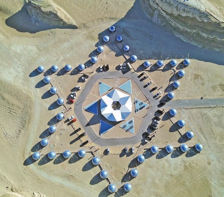 SNOW-CAPPED mountains, the Gobi Desert, inland lakes … Northwest China is a treasure trove of natural wonders and a testament to the legacies of ancient civilizations. Here we take our readers on a tour of the most other-worldly sceneries in Qinghai Province, which are high on the list of must-visit places for diehard explorers. Keluke and Tuosu lakes (可魯克湖和托素湖) Located in the northeast of the Qaidam Basin and 50 kilometers from Delingha, the capital of the Haixi Mongolian and Tibetan Autonomous Prefecture in Qinghai, are twin lakes Keluke and Tuosu, the former a smaller fresh water lake and the latter a bigger saltwater lake. Bayin River connects the twin lakes, one known for its luscious vegetation and the rich colors of its yellow, green and blue water, and the other, for its shiny pristine azure as its saltwater is hardly agreeable for aquatic life. Encircling both lakes are the remarkable Yardang rock formations, standing for thousands of years as faithful guardians of the landscape. Emerald Lake in Da Qaidam (大柴旦翡翠湖) Emerald Lake in Da Qaidam (also known as Dachaidan, meaning “Great Salt Lake”) District in the Haixi Mongolian and Tibetan Autonomous Prefecture is a salt lake at an altitude of more than 3,000 meters, nestled in the snowy plateau. This dreamlike lake is not a complete lake, but a group of hundreds of salt pit lakes. The salt pools of different depths are like pieces of “emerald,” each with a different shade. Moreover, the crystal clear lake water in marvelous emerald green, blue-green and other various shades shimmers with luster as the angle of sunlight changes. These lakes of varying sizes are all pits left behind from years of salt lake mining, like a spilled palette. The quiet surface of the Emerald Lake is like a mirror, on which are reflected the blue sky, white clouds and snow-capped mountains. Wusute Yardang Geological Park (烏素特雅丹地質公園) In the northwest of the Qaidam Basin lies the world’s only water Yardang landform. Viewing from above, you will see wind-eroded rocks in various shapes floating on the shimmering water, reminiscent of yellow hills. The wind-eroded rocks, known as “Yardang” in the Uygur language, are impressive with their massive scale and miscellaneous shapes. Five kilometers away from the Yardang wonders on water is Lonely Space, a luxury hotel that opened just last year. Its hexagram-shaped complex on the lonely Gobi Desert is a stark landscape itself, as if an alien spacecraft had made a landing away from populated areas. Lenghu Mars Camp (冷湖火星營地) At the end of the 95-kilometer Mars No.1 Highway, flanked by desolate Yardang landforms, is the Lenghu Mars Camp, a new tourist attraction known for its unearthly scenery. Legend has it that the town of Lenghu, literally, “Cold Lake,” got its name in 1956, when an oil exploration team arrived in the desolate region. A team member washed his hands in a lake and found that the water was freezing cold; hence the name. Cold weather is one of the key features of the town lying within the city of Mangya, along with little rain and strong winds that through erosion resulted in the formation of ridges of compact sand called Yardangs. The camp offers various experiences such as purifying water and rocket building, where participants learn about space science and simulate the experience of landing on a desolate planet for the first time. Aiken Spring (艾肯泉) Some 300 km from the Mars Camp is another spectacular scene hidden away from the crowds. In Huatugou Town, Mangya City, Aiken Spring earns itself the nickname “Devil’s Eye.” The vibrant green water spewing out of the spring contains a high degree of sulfur, making the land around it barren. Viewed from above, the spring resembles the swollen eye of a mythical creature, with the bubbling water as its “eyeball.”(Li Dan) |