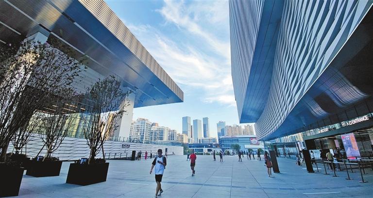 SHENZHEN Library’s north division and Shenzhen Art Museum’s new site, with a public square in between, have started their trial operations. The two new cultural landmarks are located near the Hongshan Metro Station in Longhua District. The library currently has only opened its 3,500-square–meter first floor to readers; the services include borrowing and returning books, a digital twin lab and book donation. The library ultimately will house an extensive collection of 8 million books and feature a three-floor-deep underground storage area with an automatic and intelligent book sorting system. Once a reader submits a book request, the books will be retrieved by an automated carriage, which can travel from the underground floors to the top fifth floor for immediate pickup by the reader. The new art museum includes an exhibition area of 20,000 square meters, with an artwork storage room of nearly 6,000 square meters, 18 exhibition halls and an outdoor area for exhibiting sculptures. The art museum is displaying paintings, video art and photographic works selected from its collection. (Cao Zhen) |