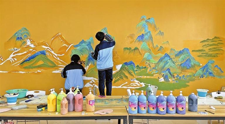 WHEN there were yellow paint stains on the hem of Zhou Baile’s school uniform, his family and teachers suggested that he change into a new uniform, but he refused. “For me, the stains are a symbol of creation,” said Zhou, who is in his second year of senior high school in Changchun, Jilin Province. Zhou is one of the 21 students at No. 150 High School of Changchun who replicated the masterpiece “A Thousand Miles of Rivers and Mountains,” which was painted by Wang Ximeng during the Northern Song Dynasty (960-1127), on the walls of their fine art classroom. The 3.5-meter-tall replica has a total length of 11 meters and it took the students 129 days to complete, said Duan Yingzi, the fine art teacher at the school who guided the painting. To allow more students to receive aesthetic education, Duan established a painting club at the end of 2022, guiding students to appreciate and imitate famous Chinese paintings. She purchased a high-definition copy of “A Thousand Miles of Rivers and Mountains,” and brought it into class so that her students could appreciate the lines and essence of the classic. “Wang created the masterpiece at the age of 18. It occurred to me to question why my students, at a similar age, couldn’t give it a try,” said Duan, having encouraged her club members to participate in the painting project. The project began in early March. The students sketched, applied color and filled in the details, turning the original, flat painting into a relief work. They also added figures, flowers and other elements into their version of the painting, including their own inspirations. “Seeing the work we created, I could sense what Wang was feeling when he was completing this masterpiece more than 900 years ago,” said Zhang Chuying, another student in the project. “It was as if I were standing next to him and enjoying the rivers and mountains with him.” “The process of painting not only improves confidence and concentration, but it is also a way to relax after learning,” Zhou said. Duan hopes that through their recreation of the Chinese masterpiece, the students will enhance their understanding of Chinese painting. “I hope they will be able to pass on the excellent traditional culture in an innovative way.” (Xinhua) |