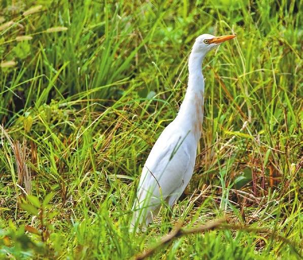 THE cattle egret (Bubulcus ibis) is a medium-sized bird species found in various parts of the world, including Shenzhen. Measuring about 50 centimeters in length, it has a compact body covered in white plumage, which helps it blend in with its surroundings. However, during the breeding season, adult cattle egrets develop beautiful orange-buff feathers on their heads, necks and backs, adding a touch of color to their appearance. They also possess a long, slender yellow bill, which they use to catch their prey. These birds can be found in various habitats, including wetlands, marshes, grasslands and agricultural fields. In Shenzhen, they are often seen near water bodies, ponds, lakes, rivers and open areas with grass and vegetation. The luckiest birdwatchers may spot them foraging in fields alongside grazing cattle, as these opportunistic feeders feeding happily on the insects stirred up by the cattle. With their diet primarily consisting of insects and small invertebrates, the birds are welcomed by their cattle friends, as they help control pest populations. During the breeding season, typically in spring and summer, these birds form large colonies in trees or shrubs near water bodies. The females lay a clutch of up to five eggs, which both parents incubate. Once the chicks hatch, both parents work together to feed and protect their young until they are ready to fledge and become independent. A valuable asset to both the natural and agricultural landscapes, the cattle egret is a beautiful and charismatic bird, adding to Shenzhen’s natural beauty and biodiversity. Let us protect these magnificent birds, ensuring their continued presence in our city. |