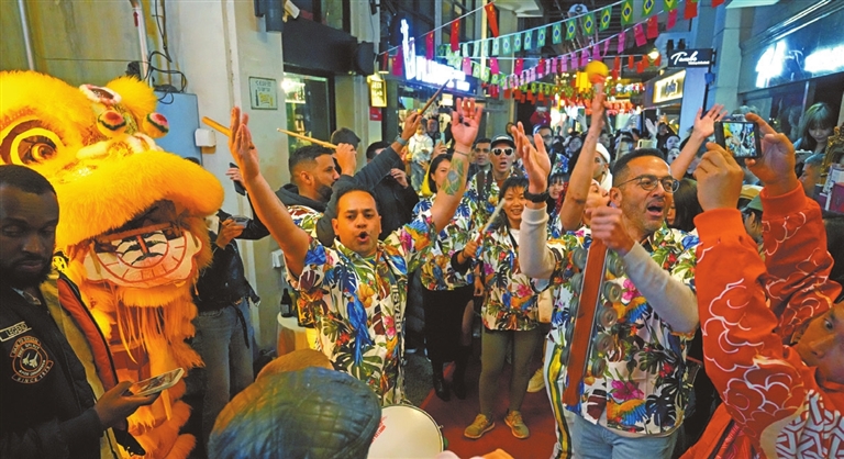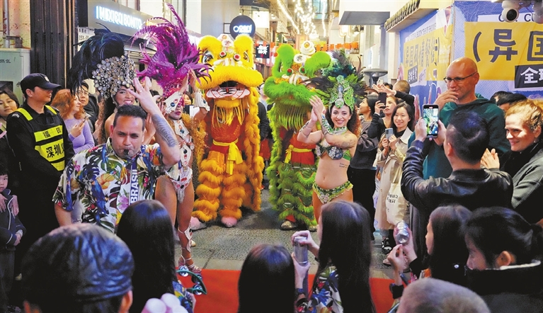 A VIBRANT parade, specially choreographed to meld Brazilian samba with the Chinese lion dance, brought life to Shuiwei’s Cultural Block 1368 in Shenzhen’s Futian District on Saturday night.