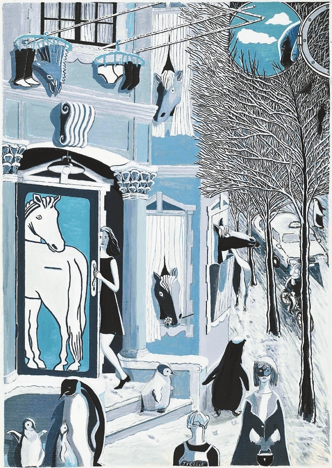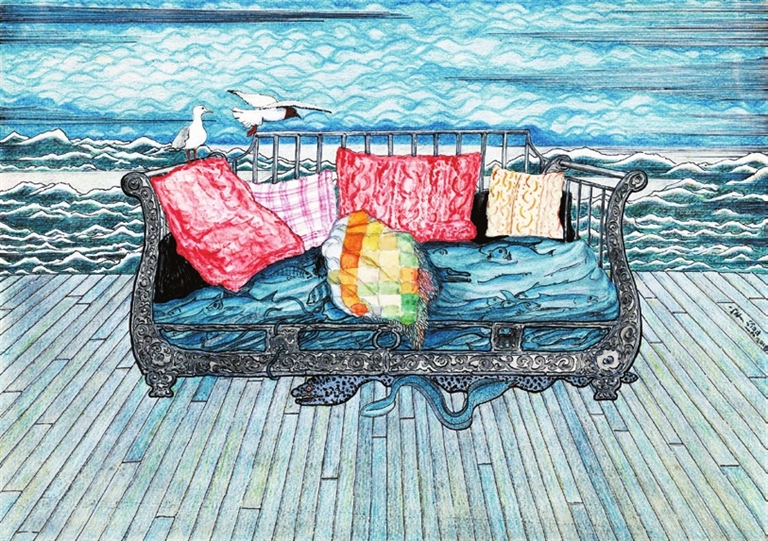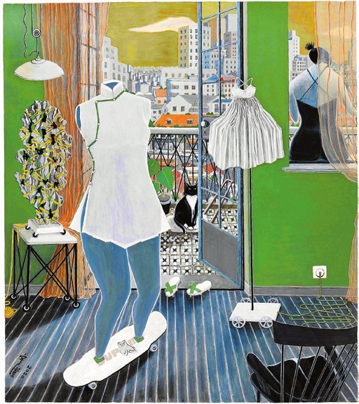 “Blossoms: Jin Yucheng Solo Exhibition” showcases 260 paintings Jin created in the last 10 years. He adopts a surrealistic approach to depict his observations of how city life has reshaped people’s emotions and mentality, dwelling on the truth underlying the blooming metropolitan scenes. Some of his sketches, although monochromatic but full of vivid details, accentuate the mixed atmosphere of a metropolis: quiet yet sleepless, slowly-paced in somewhere, yet hustling in elsewhere.