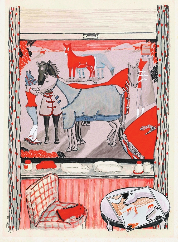 Jin started to take painting seriously when he made a series of illustrations for “Blossoms.” The sketches outline the age-old landscape of Shanghai, and blend the past and present, fiction and facts. “Jin’s visual expression covers a variety of subjects and techniques. Either through text or painting, he is dedicated to the search for the distinctive tonality of things, in the hopes of catching the sparkle in a multitude of events and characters,” Xie Xiaodong, curator of the exhibition, said.