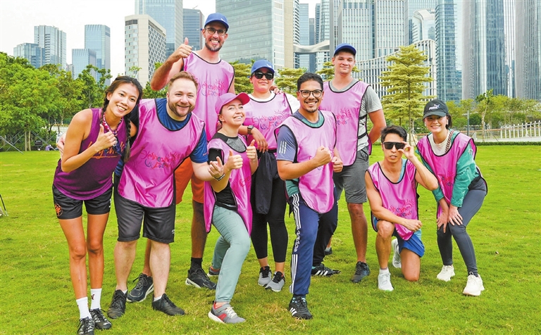 Chen Siqi vankochensq@163.com A GENTLE breeze and warm sunlight greeted a group of around 20 foreign sports enthusiasts, who gathered at Qianhai Guiwan Park on Saturday morning for an ultimate frisbee event. The event, themed “Undefined Frisbee: Fun Game for Expat Talent,” brought together seasoned frisbee players and newcomers brimming with curiosity about the sport. After receiving instructions from the coach on rules and throwing techniques — as well as several rounds of practice — all players gained a better grasp of the game and refined their throwing skills. The players were divided into two groups, sporting pink and blue vests, and competed eagerly on the grass. Seasoned players patiently instructed the newcomers, discussing strategy and providing them with opportunities to play. For Russian Nikita Potrashilin, it was his first time playing frisbee, and he thought that it is a very interesting sport. “There are rules and all that stuff that you need to learn,” Potrashilin said. He gave a thumbs-up to the coach and his teammates’ instructions, which allowed him to quickly understand how to play. Andres Raul Brown, from the U.S., is a seasoned player, who leads two frisbee teams that have participated in tournaments in Guangzhou, Thailand, Cambodia, and other places. “In Shenzhen, the frisbee community is growing, and we are trying to improve the spirit,” Brown said. He added that people who play frisbee are always in high spirits, which helps create a vibrant community. Before playing frisbee, expats attended an info session at the Qianhai International Talent Hub where they learned about Shenzhen’s sports venues and how to reserve them. Some participants shared their experiences in booking gyms, raised questions, and were provided actionable solutions at the gathering. Shenzhen now has 39,256 sports venues. Residents can make reservations for 10,230 of those venues through the “iShenzhen” app. Kisha Matthew, from the U.K., has been in Shenzhen for about eight months. She thought that the information shared was very helpful. Though she enjoys swimming, the high cost associated with fitness gym pools has been a barrier. Now, she can find more affordable swimming pools through the app. The event was hosted by the Shenzhen Municipal Science, Technology, and Innovation Bureau, organized by the Qianhai International Talent Hub and EyeShenzhen, and supported by the Shenzhen Municipal Culture, Media, Tourism, and Sports Bureau. |
