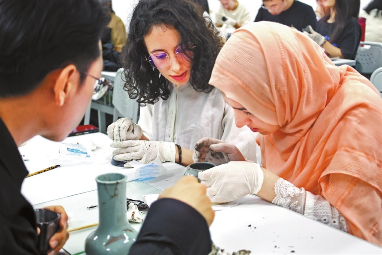 Debra Li debra_lidan@163.com MORE than 60 students have enrolled in an 18-session kintsugi art course at Shenzhen University (SZU), the first time that an intangible cultural heritage is systematically taught to college students, who will earn one credit upon completing the course and creating one piece of kintsugi work. The course, taught by Fang Ruihua, a fourth-generation inheritor of juci and kintsugi based in Bao’an District, is an innovative effort to enrich the school’s curriculum and disseminate Chinese cultural traditions. “In the past, people would repair stuff when they were worn or broken, but nowadays, most simply throw them away and get replacements,” Fang told a fully-packed classroom at SZU’s Canghai campus Sunday afternoon. “For me, the act of repairing items to extend their lifespan goes beyond just practicing sustainability; it teaches us about accepting life’s imperfections, appreciating each other’s uniqueness, and understanding the value of endurance.” Juci and kintsugi are both ancient Chinese ceramic restoration techniques employed to mend broken porcelain, pottery, and lacquer wares. While juci uses small metal staples to hold broken pieces together, kintsugi utilizes a special tree sap lacquer dusted with powdered gold, silver, or platinum as an adhesive to repair damaged items. Translating to “golden joinery” in Japanese, kintsugi is referred to in Chinese as “金繕” (pinyin: jīnshàn), meaning “repairing with gold.” The exact origin of kintsugi remains uncertain. A popular story alleges that some Japanese craftsmen developed the technique after shogun Ashikaga Yoshimasa in the late 15th century had his favorite Chinese tea bowl — which had been carelessly broken — repaired by juci in China and returned but disliked the visible metal staples. However, Fang suggests that like the tea ceremony and flower arranging, kintsugi has existed for centuries in China, but the Japanese refined these traditions as they became obsolete in their native land. This centuries-old practice is often used to mend cherished objects by enhancing the cracks, which serve as a visual testament to the object’s history. Once completed, beautiful seams of gold or silver glint in the conspicuous cracks of ceramic wares, giving a one-of-a-kind appearance to each repaired piece. Each attendee, many of whom were foreign students, received a small porcelain vase or bowl, which they then shattered into large pieces using a hammer. They meticulously applied adhesive to the edges of each piece before reassembling the item into its original shape. The adhesive — a blend of natural lacquer extracted from the sap of the lacquer tree and flour glue — is glossy, robust, and waterproof. In cases where small sections of the original ceramic are missing, a paste comprising the adhesive and clay powder is used to fill the gaps. “Working with the adhesive can be challenging due to specific requirements for it to harden, such as high humidity, and the lacquer itself can potentially cause skin irritation,” Fang explained. The students were instructed to take their items back to their dormitories, leaving them to dry in the bathroom while taking extra care to prevent contact with water. Teodora Lalovic, a student from Serbia studying Chinese at SZU, said the course was an enlightening experience. “Although I studied graphic design in my home country, I have never attempted this form of art before,” she said, adding that learning about Chinese culture and working with utensils will enhance her comprehension of 3-D models and inspire her future artistic pursuits. Sophomore student Liu Miaosi said she enjoyed the course. “Engaging in manual work provides a therapeutic experience, helping me focus on the present and alleviate all worries,” she said. “It feels as though I have time-traveled to my childhood, playing with my favorite toy.” Zhang Wenwen, a faculty member at SZU’s Media and Communication School, advocated for the integration of this course into the school’s curriculum. Leading a team of more than a dozen students dedicated to promoting cultural heritage, he expressed regret that certain traditions are better developed in other countries, with craftsmen from those regions revitalizing art forms like kintsugi. “Hopefully, this course will pique the interest of more young individuals in our cultural heritage,” Zhang said. |
