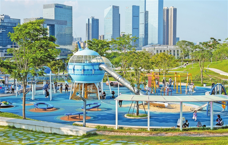 THE Shenzhen North Railway Station Central Park in Longhua District is renowned for the Talent Greenway, an outer space-like children’s recreational area, a meandering elevated walkway, a reading lounge housing a collection of 6,000 books, and a tranquil landscape adorned with local flora. Located opposite the west square of Shenzhen North Railway Station, the park has recently made efforts to enhance visitors’ experiences. Dining vehicles will be stationed near the children’s recreational area to provide light meals. Visitors capturing photos at iconic spots, such as the park entrances, Qunxian Square (群賢廣場), the book lounge (云頂書吧), the elevated walkway, and the children’s recreational area (10號星球樂園), and sharing them on Xiaohongshu, can enter a lucky draw to win merchandise, such as a mug, a roll of adhesive tape, disposable masks, or a bag. Those posting their photos on WeChat Moments and receiving 30 likes can claim a complimentary glass of lemon tea at the park’s book lounge between June 6 and June 9. (Cao Zhen) |