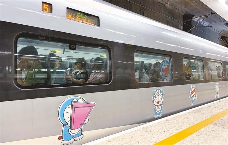 THE Doraemon-themed high-speed trains between Hong Kong and South China’s Guangdong Province began service over the weekend, transporting passengers to and from Hong Kong, Shenzhen and Guangzhou on an immersive journey. Now until Aug. 18, passengers on board of the themed trains are able to travel in style with decorated cabins featuring cartoon character Doraemon on designated days to and from Hong Kong’s West Kowloon Station as well as Guangzhou South, Shenzhen North and Futian railway stations. On Saturday, the first themed train, G6582, departed from Hong Kong’s West Kowloon Station at 8:23 a.m. for Guangzhou South Station. At 9:43 a.m., the southbound G6581 left Guangzhou South for West Kowloon. MTR Corporation Ltd. said that the cross-boundary carriages with the manga makeover constitute a grand finale to a series of Doraemon-themed major transport events in Hong Kong this summer, following the Light Rail, the East Rail line and the Airport Express. The train is uniquely designed with more than 50 special Doraemon figures to create an immersive atmosphere, along with other playful decorations and little surprises both in and out of the carriages. Paul Wong Kah-ming, chief of the MTR Corp’s cross-boundary segment, has said that as a part of Hong Kong’s major events this year, it is hoped that this project can attract more mainland visitors to the city over the summer holidays through upgraded service and enhanced experience, and further boost Hong Kong’s tourism sector. The “100% Doraemon & Friends” tour, one of the world’s largest Doraemon exhibitions, is being held at the famous landmark Avenue of Stars and Tsim Sha Tsui Harborfront until Aug. 18. The show features Doraemon sculptures and interactive installations, and original artworks that showcase the rich world of Doraemon from manga art to movies.(Xinhua) |