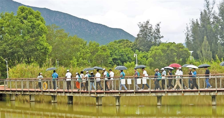 Windy Shao windysjf@hotmail.com OFFICIALS and experts from 21 countries gathered at the Baguang Heritiera Wetland Park on Monday for a collaborative discussion on the sustainable management of mangrove ecosystems. The visit was part of the International Mangrove Center’s workshop in Shenzhen focusing on mangrove conservation and restoration efforts. Among the topics discussed were the Chinese mangrove conservation and restoration action plan, insights on mangrove ecosystems and restoration techniques, the impact of technological advancements on sustainable mangrove restoration, and strategies for monitoring and evaluating mangrove ecosystems. Veronica Argelis Gonzalez Quintero, a delegate from Panama’s Ministry of Environment, expressed admiration for the preservation efforts at Baguang. “I am very impressed about the infrastructure that you have built to preserve it. It’s something we need to improve in my country,” she told the Shenzhen Daily. She praised the balance between nature and infrastructure in Shenzhen, emphasizing the importance of learning from such practices for global environmental improvement. “I saw the Shenzhen City around, and it was like, wow, it’s a good balance between nature and all the human infrastructure. “Not even just for me, for Panama, for different countries, we really need to learn from you, how to improve in our countries,” she said. Maria Rebeca Pacheco De Ramos from Venezuela marveled at the beauty and significance of the wetland park, echoing the sentiment shared by many visitors. “We have similar areas like Baguang and we are also trying to make plans to protect them,” she said. Local volunteers from the Baguang Nature School briefed the guests about the park’s history, eco-education initiatives, and nature appreciation programs. The school, initiated in 2020, is one of the seven national nature schools in Shenzhen certified by the Ministry of Ecology and Environment. It has become a vital hub for environmental education and awareness. Through its innovative nature classes and community partnerships, the school has engaged over 10,000 participants in nature education events. Nestled in Dapeng New Area, Baguang Heritiera Wetland Park boasts a diverse array of mangrove ecosystems, with the distinction of hosting the most extensive looking-glass mangrove cluster in China and globally. By prioritizing ecological preservation and minimal interference with the site’s natural state, the park maintains the original landscape of ancient villages and forests, setting an example for sustainable environmental practices. |