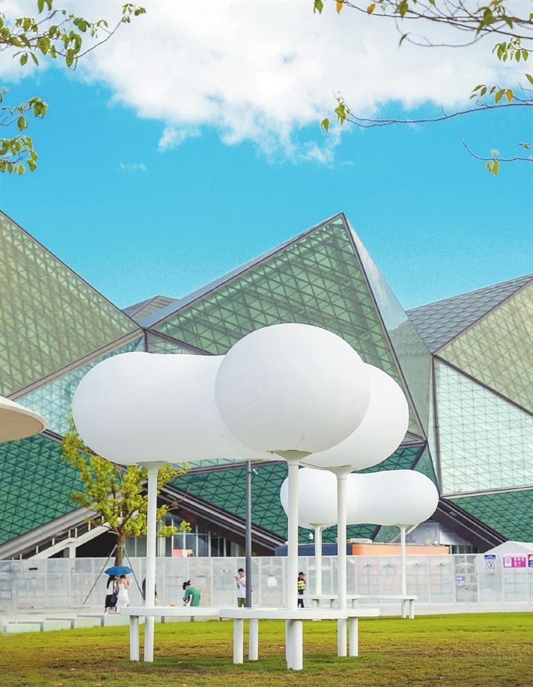 SHENZHEN’S latest commercial hub, MixC Universiade World, is making waves in Longgang. The complex is revolutionizing Shenzhen’s commercial landscape with a blend of architectural artistry and over 200 leading brands. Embracing a unique design, MixC Universiade World captures the essence of the Shenzhen Universiade Sports Center Stadium’s energy while incorporating elements of natural beauty. Its spacious layout offers residents a harmonious blend of commerce and nature, creating an environment that celebrates the beauty of the outdoors. Strategically segmented, the complex features distinct zones that cater to different interests, from waterfront dining to trendy fashion outlets. With a diverse range of offerings, including professional sports facilities and family-friendly attractions, the new landmark promises something for everyone. To mark its grand opening, MixC Universiade World hosted a theme event, “Flow in the Nature,” featuring a captivating public art exhibition. Let’s have a tour around the new landmark through the lens of Shenzhen Daily photographer Lin Jianping. (Song Yingwen) |