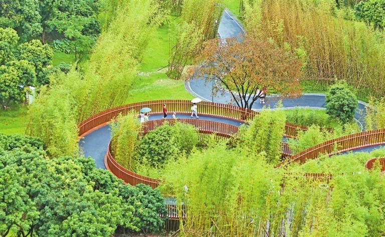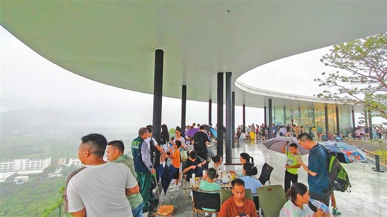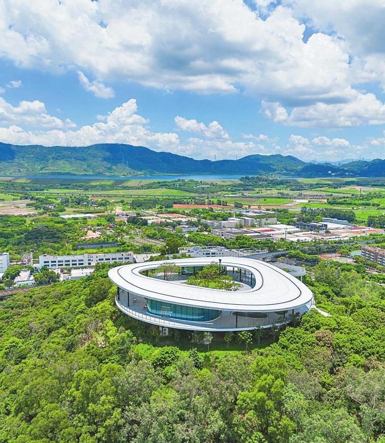 The summit, the highest point in the northern wing, stands out from afar like a “flying saucer” and boasts an open-air design. Its circular walkway allows visitors to enjoy a stunning 360-degree view of Guangming District. For those needing to recharge after their climb, a mountaintop café serves refreshments.