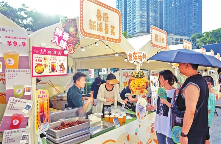 THE First Futian?Meilin Food Festival, held over the weekend, brought visitors three days of food fun. The main venue, the InJoy shopping mall, was transformed into a sea of food, taking visitors on a culinary journey. Subvenues such as A Park Shenzhen Digital Art Park, Meilin Life Center, Zoll Shopping Mall, and Huaqiang Science Park Loto also hosted their food events, allowing foodies to easily discover delicious food right at their doorstep. The festival market brought together over 40 food vendors and chain restaurants, offering a variety of snacks for visitors to try. Additionally, there were exciting interactive activities to keep people entertained. To celebrate InJoy’s 8th anniversary, a grand party with “Cute Alliance” installations was held at the mall. Let’s follow Shenzhen Daily photographer Lin Jianping on a culinary journey. (Yang Mei) |