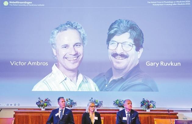 THE 2024 Nobel Prize in physiology or medicine has been awarded to U.S. scientists Victor Ambros and Gary Ruvkun for their work on the discovery of microRNA, a molecule that governs how cells in the body function. Their research revealed how genes, which contain the instruction manual for life, give rise to different types of cells within the human body, a process known as gene regulation. The Nobel Prize committee announced the prestigious honor, seen as the pinnacle of scientific achievement, in Sweden on Monday. It praised the “groundbreaking discovery,” which the committee said “revealed an entirely new dimension to gene regulation.” The discovery of gene regulation by microRNA – a family of molecules that helps cells control the sort of proteins they make that has been at work for hundreds of millions of years – was the result of decades of work by Ambros, a professor of natural science at the University of Massachusetts Medical School, and Ruvkun, a professor of genetics at Harvard Medical School. “Their discovery is of fundamental importance to understand how cells work, and thus how organisms develop,” said Love Dalén, a professor of evolutionary genomics at Stockholm University. “This finding was groundbreaking, and has affected more or less all fields of biology and medicine,” he said. “The information stored within our chromosomes can be likened to an instruction manual for all cells in our body. Every cell contains the same chromosomes, so every cell contains exactly the same set of genes and exactly the same set of instructions,” the committee said in a statement, detailing the duo’s work. Yet different cell types – such as muscle and nerve cells – have different characteristics. The two biologists have spent their careers investigating how these differences arise. “The answer lies in gene regulation, which allows each cell to select only the relevant instructions. This ensures that only the correct set of genes is active in each cell type,” the committee said. Gene regulation by microRNA has aided the evolution of increasingly complex organisms. If gene regulation goes awry, it can lead to cancer and other conditions found in humans and other animals, like hearing loss and skeletal disorders. “MicroRNAs are very much implicated in cancer. There is ongoing research to make treatments or utilize micro RNAs – mimic microRNA or block microRNA – to treat cancer. There’s some technical hurdles in that so there’s not been any drugs yet,” said Thomas Perlmann, secretary-general of the Nobel Assembly.(SD-Agencies) |