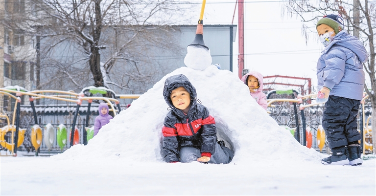 This aerial photo shows a snow-draped section of the Great Wall in Shangying Township, Hebei Province on Monday. Snowstorms and drastic temperature plunges are forecasted for various parts of China today and tomorrow, including Inner Mongolia, Heilongjiang, Jilin, and Shandong. Significant temperature drops are also expected in southern provinces. Xinhua |