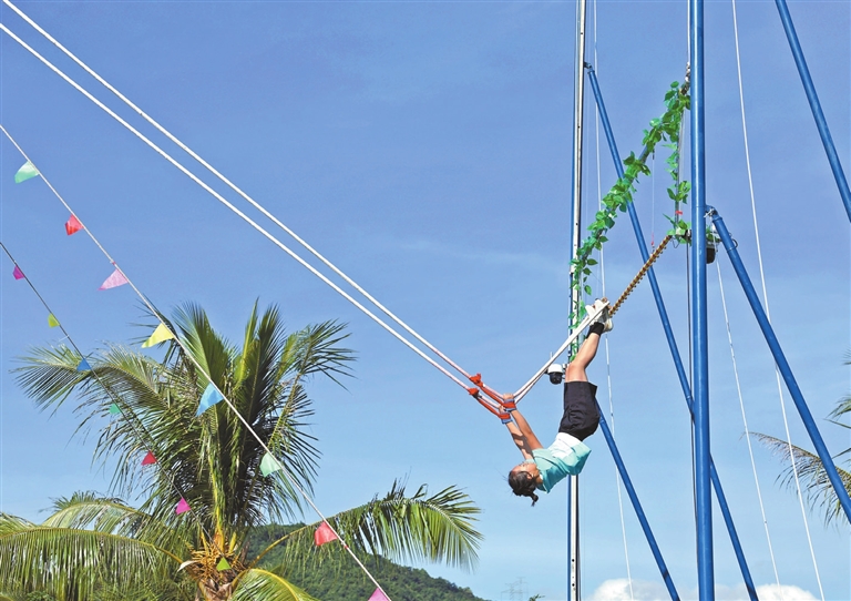 Liaoning’s Jin Meiyan is seen during the swing competition. The 12th National Traditional Games of Ethnic Minorities of the People’s Republic of China is taking place from Nov. 22 to 30 in Sanya. Around 10,000 athletes from 29 delegations across China are competing in 149 events under 18 sports and 170 exhibition events. Xinhua |