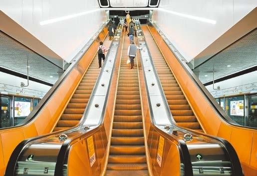 Another standout feature at the station is the uniquely designed escalator, which appears to transport passengers through a space-time tunnel adorned with orange hues. Stepping onto it provides a thrilling sensation, akin to embarking on a journey at the speed of light. This design element has quickly become a favorite photo spot for visitors eager to capture their experience.