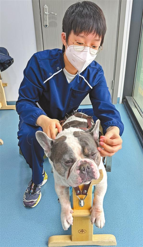 Zhang Yu JeniZhang13@163.com CHINA’S pet economy has witnessed exponential growth in recent years, with new pet-related spending scenarios continually emerging. According to the 2025 White Paper on China’s Pet Industry (Spending Report), spending by dog and cat owners had surpassed 300 billion yuan (US$41.34 billion) by 2024, with the number of those pets exceeding 120 million. Specifically, spending by dog owners reached 155.7 billion yuan, a 4.6% year-on-year increase, while spending by cat owners reached 144.5 billion yuan, a significant 10.7% increase year on year. This expanding market has led to the creation of many new professions that support pets throughout their lives. As attention to pet health grows among pet owners, an increasing number are opting for traditional Chinese veterinary medicine (TCVM) for their pets’ healthcare and therapeutic needs. When TCVM enters pet hospitals TCVM is no novelty. Records of animal healthcare in the “Rites of Zhou” (circa 300 BCE) and the “Horse Healing” mural in Cave 296 of the Mogao Caves at Dunhuang attest to its ancient roots. However, its use in modern pet care represents a fascinating fusion of tradition and modernity. And now, this millennia-old Eastern wisdom is unlocking new hope for furry patients in unexpected ways. Common TCVM therapeutic techniques include acupuncture, aquapuncture (a form of acupuncture where a small amount of liquid is injected into an acupuncture point), herbal medicine, tuina (medical massage), and moxibustion (the burning of dried mugwort on or near the skin). For example, acupuncture involves stimulating specific points on the body, usually by inserting specialized needles. These points typically lie along the body’s Meridian Channels, through which Qi, or vital energy, is believed to flow. Most veterinary acupuncture points and Meridian lines are transposed to animals from humans, though knowledge of some “classical points” on particular species has been retained and is used to this day. “Fundamentally, the basic theories of traditional Chinese medicine for pets and humans are the same,” explained Li Heng, a TCVM practitioner who works at Luno Pet Hospital in Luohu District. Li, who graduated from Southwest University with a major in veterinary medicine, started practicing TCVM in 2020. At present, she has up to 200 visits per month. The diagnostic approach in TCVM closely mirrors the methods used for humans. Four key techniques — observation, auscultation and olfaction, inquiry, and pulse-taking — are used to assess a pet’s condition. Practitioners begin by observing the pet’s overall development, complexion, tongue coating, and expressions, which can reveal vital clues about their health. Auscultation and olfaction involve listening for sounds such as coughing or wheezing and detecting any unusual scents emitted by the pet, which can indicate internal issues. Inquiry is a nuanced process since pets cannot communicate verbally. Veterinarians rely on detailed accounts from the pet’s owner regarding the animal’s living environment, dietary habits, behavior changes, and medical history to piece together a comprehensive health picture. Finally, pulse-taking in pets is conducted on the inner side of their hind leg, where the pulse is felt with a light touch. A skilled veterinarian can discern a range of health issues from the quality and rhythm of the pulse, combining this information to form a diagnosis and tailor an appropriate treatment plan. According to Li, issues such as post-fracture surgery pain, arthritis exacerbated by seasonal shifts, persistent gastrointestinal troubles like recurrent vomiting and diarrhea, chronic skin conditions, and unusual behaviors stemming from neurological issues are all effectively mitigated through acupuncture. “Some animals that were previously unable to walk may be able to walk immediately after undergoing two or three traditional Chinese medicine treatments,” Li said. She noted that compared to Western medicine examination fees that can reach thousands of yuan, TCVM has relatively lower diagnostic costs. For most traditional Chinese veterinarians, the fee for each diagnosis hovers around several hundred yuan. Not a panacea While the efficacy of TCVM can be remarkable, it is not all-encompassing. Li emphasized that TCVM has its limitations and that Western medicine plays a vital role in certain critical situations. Determining whether a pet’s condition is urgent or chronic is crucial in deciding the appropriate course of treatment. “If the condition is chronic, it may be feasible to initially focus on TCVM for its holistic approach to managing long-term health issues. However, in the case of an urgent situation where the pet’s life or vital signs are at risk, immediate intervention with Western medicine is often necessary to stabilize the animal’s condition,” Li said. Once the pet’s vital signs are stable, a combination of TCM and Western medicine can be considered to provide comprehensive care, she added. This integrated approach leverages the strengths of both medical systems, using Western medicine to address acute symptoms and TCM to support the body’s overall healing process and address underlying imbalances. Li also mentioned that acupuncture, while generally safe and effective, can occasionally cause discomfort or pain, and some animals may not tolerate the procedure well. Additionally, the administration of Chinese medicine can pose challenges, particularly with certain animals. For larger animals, it might be difficult to administer medicine orally, as they may resist or be uncooperative during the process. Another challenge arises with cats, which are often sensitive to the taste and texture of traditional Chinese medicines. These medications typically have a distinct, sometimes bitter flavor that can be unappealing to felines. When cats chew these medicines, the taste can trigger a salivary response, leadin
