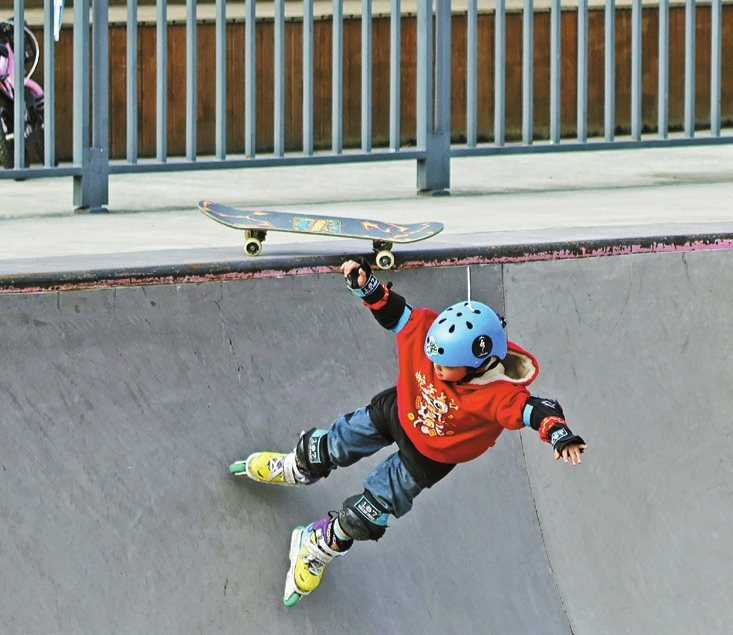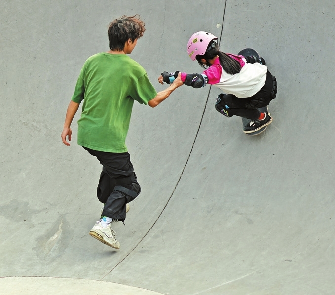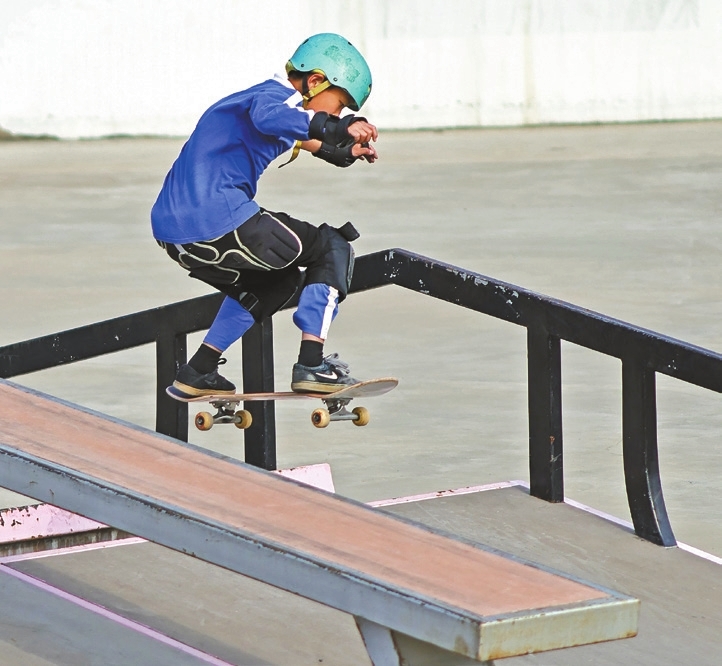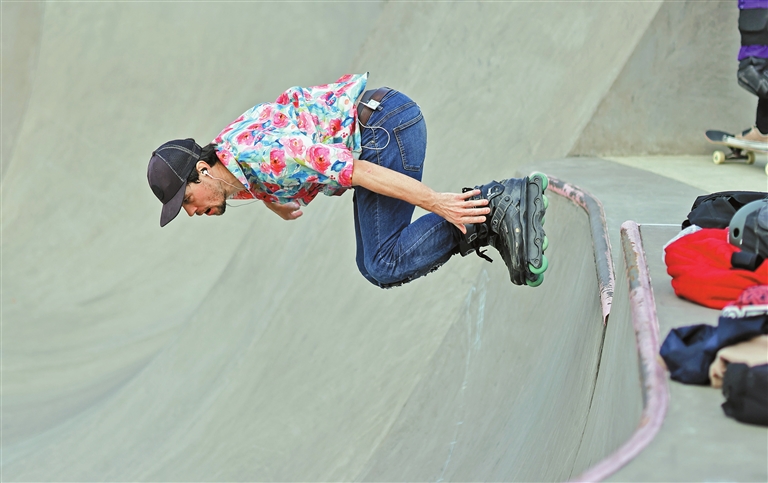 Shenzhen Daily photographer Liu Xudong captures through his lens the thrills of skateboarding fans at the park.(SD News)