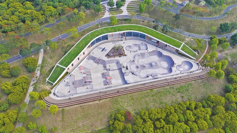 Shaded by lush trees and offering fresh air, this space offers the thrill and challenge of skateboarding while allowing visitors to take in the most stunning views Shenzhen has to offer.