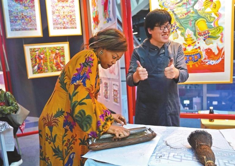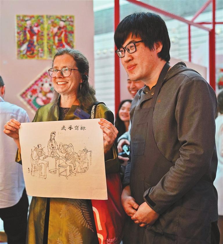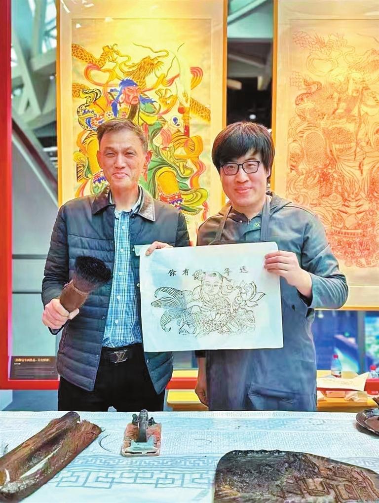 Guided by Yangliuqing woodblock New Year picture inheritors Yang Peng and Yang Zhongmin, these guests not only marveled at the intricate artistry but also rolled up their sleeves to try their hand at the timeless art form.
