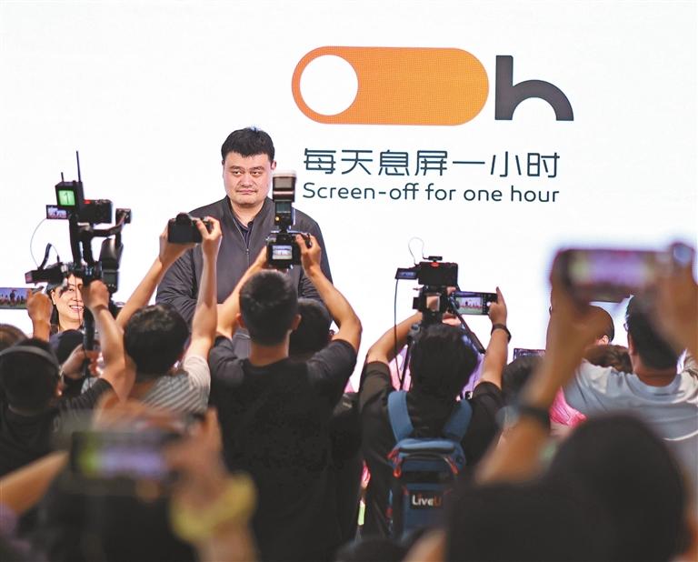 ? Former basketball star Yao Ming attends a ceremony to promote the “Screen-off for One Hour” initiative at the north division of the Shenzhen Library in Longhua District yesterday, the 30th World Book Day and the 10th Shenzhen Minors’ Book Reading Day. Launched by Shenzhen, the initiative encourages residents to put away their mobile phones for one hour every day and spend that time reading paper books or engaging in outdoor exercise. P2, 3 >Liu Xudong |