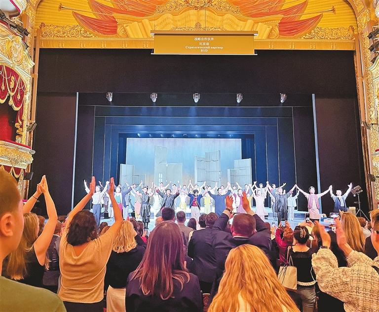 Zhang Yu JeniZhang13@163.com ON the vast expanse of Russian soil, a unique cultural feast is unfolding as the Shenzhen-created dance drama “Wing Chun” is currently on a Russian tour showcasing the unique charm of Chinese culture and initiating a dialogue between two civilizations. The first three shows of the tour took place from April 25 to 26 at the renowned Bolshoi Theater in Moscow. That stint is being followed by a run of three performances from today through May 1 at the Mariinsky Theater in St. Petersburg, making it the first original Chinese production to grace the stages of two of Russia’s most esteemed theaters. Most importantly, it marks a significant milestone in the cultural exchange between China and Russia, as the years 2024 and 2025 have been designated as the Years of Culture between the two countries. The Shenzhen dance drama, which seamlessly blends traditional Chinese martial arts with contemporary dance, not only showcases the richness of Chinese cultural heritage but also fosters mutual understanding and appreciation between China and Russia. Finding success in Moscow “Wing Chun” has been hailed as a triumph in the Russian capital. Tickets for the first show on the evening of April 25 and the last show on the evening of April 26 were completely sold out. In addition, the rehearsal attracted many Russian media reporters, who came to get a sneak peek. They were able to engage in face-to-face exchanges with leading cast members and visit the dressing room to uncover the secrets behind the show’s exquisite costumes. As a reporter present to cover the tour, I found that the dance drama’s intricate choreography and compelling narrative visibly entranced the Moscow audiences, their admiration manifested through repeated bursts of fervent applause during each performance and the standing ovations that greeted every final bow. During the concluding performance in Moscow on the evening of April 26, the audience rose in a standing ovation even before the show had reached its end. The performance received unanimous acclaim. The Russian newspaper Izvestia lauded the production for its artistic prowess and cultural importance, noting, “The Shenzhen Opera and Dance Theater brought a play about a national treasure to Russia.” Russia-K, a Russian nationwide nonprofit television channel that broadcasts shows about arts and culture, stated, “Even if you don’t know about ‘Wing Chun,’ you will definitely be attracted by their beautiful dance.” Prominent figures from Russian political and cultural circles also came to watch the debut on the evening of April 25. Oleg Matytsin, chairman of the State Duma Committee on Physical Culture and Sports of Russia, Olga Kazakova, chairwoman of the State Duma Committee on Culture of Russia, and Irina Viner, former president of Russia’s rhythmic gymnastics federation, all gave the Shenzhen production a thumbs up. Officials from the Chinese Embassy in Russia and Gao Yan, the spouse of the Chinese ambassador to Russia, also attended the performance. “A group of absolutely incredible people, even though they don’t say a word — they tell everything with their bodies. Their movements, conveying emotions, conveying the story. You completely forget that you can’t hear the lines,” Kazakova told Shenzhen Daily. “Hats off to everyone who created this amazing performance!” Kazakova shared, adding that she would rate the dance drama a 10 out of 10 for its incredible talent and emotional impact. Matytsin praised “Wing Chun” for combining Chinese culture with human civilization, giving the audience a wonderful performance and injecting new vitality into the Bolshoi Theater. Viner said she was delighted to have engaged in profound exchanges with Chinese culture on the day. “While everyone is familiar with kung fu, only you have the exceptional ability to present it as a stage art. Both Chinese and Russian cultures are rich and magnificent. May the friendship between China and Russia last forever,” she told the cast and crew after the show. With anticipation running high, the Shenzhen production is set to illuminate the prestigious stage of the globally acclaimed Mariinsky Theater in St. Petersburg starting today. Bridging cultures through dance Feng Litao, counselor for cultural affairs at the Chinese Embassy in Russia and director of the China Cultural Center in Moscow, has praised the Shenzhen-made dance drama “Wing Chun” as “creating history,” noting, “In the cultural exchange between China and Russia, this must be a grand event worth recording in history.” Feng made the remark when meeting the cast and crew after the dance drama’s Moscow debut Friday night. The phenomenal dance drama from Shenzhen not only showcased the beauty and depth of Chinese culture through an innovative fusion of martial arts and contemporary dance, but also reinforced the bonds of friendship and mutual respect between China and Russia. Before the dance drama’s Russian performances began, the cast and crew of “Wing Chun” made its grand entrance at the prestigious, 270-year-old Lomonosov Moscow State University (MSU), where it was met with enthusiastic applause and immense interest from the university’s students and faculty on the afternoon of April 24. At the Great Hall of the MSU Culture Center, students were mesmerized by a meticulously crafted promotional video for “Wing Chun” that features a professional Russian voiceover and a short live performance. During the lively interactive session, students eagerly raised their hands to ask questions. However, the Q&A segment proved insufficient to quench their curiosity. Enthusiasm reached a peak as students spontaneously took to the stage, eager to learn martial arts movements directly from the actors, who graciously guided them through the steps. Alina Aros, a Russian student at MSU, was one of the students who took great pleasure in the interactions. “I’m ver