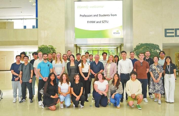 Tracy Lau ON April 16, a 27-member delegation from the University of Applied Sciences and Arts Northwestern Switzerland (FHNW) visited Shenzhen Technology University (SZTU) as part of an international academic exchange aimed at fostering deeper cooperation and mutual understanding between the two institutions. The delegation, led by FHNW professors Michael Jeive, Evelyn Kopec, and Irene Büller, included undergraduate students from five countries. During their visit, they were warmly received by faculty representatives from SZTU’s International Cooperation and Exchanges Department, College of Big Data and Internet, School of Design and Innovation, and School of Foreign Languages. As part of the exchange, the visitors toured several of SZTU’s key facilitie, exchanged views with faculty and student representatives from several SZTU colleges and visited the Shenzhen-based medical technology company EDAN, where they explored cutting-edge developments in areas such as ECG diagnostics, ultrasound imaging, patient monitoring, smart healthcare, and maternal and child health. The exchange was organized under China’s “Young Envoys Scholarship” (YES) program. |
