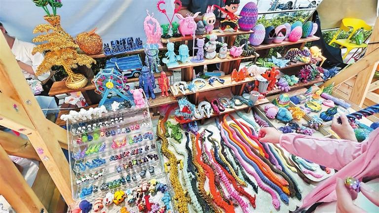 AT the bustling weekend market held at the Shenzhen Women & Children’s Building in Futian District, a group of makers are infusing street vending with a fresh twist. By day, they are ordinary office workers; on weekends, they transform into creative stall owners. These innovative entrepreneurs craft unique items using coffee beans, 3D printers, and aluminum wire, seamlessly blending traditional culture with cutting-edge technology. One stall is particularly eye-catching, selling bracelets and accessories made from strings of coffee beans. The beans, in varying shades of brown, are paired with glass and turquoise beads. The stall is run by three individuals from diverse backgrounds: Li Xia, a fashion e-commerce worker; Ma Ling, a former office clerk; and Zhang Li, Ma’s mother, who once ran a cultural products business in Beijing. Their inspiration comes from a serendipitous attempt. “My mom said, ‘Why not give street vending a try?’” Ma told Shenzhen Evening News. “Coffee is a part of urban life. Why can’t we turn it into something wearable and experiential?” Li explained. These coffee beans, though not meant for drinking, have been specially processed to retain their aroma and shape, becoming a unique medium that bridges modern life with traditional craftsmanship. However, incorporating coffee beans into cultural products is not as simple as just piling them up. Zhang is meticulous about the arrangement of the beads and the matching of colors, which she believes embody the essence of traditional craftsmanship. The team also shares DIY tutorials on the social media platform Xiaohongshu, also known as RedNote, building a private fan community to attract customers for appointment-based experiences. Another stall set up by Zhang Peng, an employee in the electronic component industry, draws children like magnets. They are captivated by the vibrantly colored “rainbow dragons,” the endearingly cute 3D-printed animals, and the aluminum wire-woven potted plants and apples on display. In March of last year, Zhang brought his first batch of 3D-printed models to the market, and he has been a regular presence there ever since. Initially, a 10-centimeter monochromatic dragon took over one hour to print, while the colorful “rainbow dragon” required over 10 hours. Over the course of a year, he has managed to cut the printing time in half. In addition to 3D printing, Zhang has also dedicated a year to mastering the art of aluminum wire weaving. Zhang hopes that through these models, tech can become less cold and more of a tangible, perceptible form of creative expression. (SD News) |