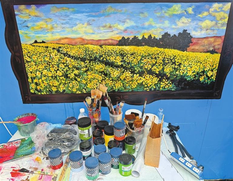 Wei Jie claudiamente@hotmail.com AMID the narrow alleys of Shekou’s Weizai community, a seemingly ordinary blue wall outside of Yulin Kindergarten has been quietly undergoing a poetic transformation, thanks to the dedicated work of Portuguese artist Maria Jo?o Príncipe. Widely known as Majó, the artist’s public mural project is bringing a vibrant tapestry of flowers to life. It is part of a nonprofit community program, initiated early this year by the Shekou Management and Service Center for Expats (Shekou MSCE), that aims to brighten the neighborhood through artistic expression and foster a stronger sense of community. Floral mural in narrow alley On Thursday afternoon (June 26), Majó was seen painting striking red peonies on a blue wall in a narrow lane off Huaguo Road. Despite the summer heat, buzzing mosquitoes, and occasional heavy downpours, she worked tirelessly, sweat beading on her forehead, paying little mind to passing mopeds as she delicately brushed petals to life. This was the third week that Majó worked on the mural, titled “The Flowers We Carry With Us.” The mural consists of five iconic Chinese flowers: the elegant spring orchid, the pure summer lotus, the noble autumn chrysanthemum, the resilient winter plum blossom, and the majestic peony. Alongside each flower, the artist has carefully selected lines of classical Chinese poetry that reflect the cultural meaning and symbolism of the depicted flower in Chinese culture. Motivated by her affection for Shekou, where she and her husband Isaias Praxedes de Luna have lived since relocating from Portugal in 2018, Majó accepted an invitation two months ago from the Shekou MSCE to create a public art piece for the Weizai community. Majó said she was inspired by the villagers’ flower pots, which evoked memories of similar scenes in her home country, when she explored the Weizai urban village with Rita Yang, director of the Shekou MSCE. “I wanted to let the flowers step out of pots and bloom eternally on the wall,” said the artist, who decided to create an open-air “gallery” where passersby could enjoy the beauty of floral art. She then spent more than a month meticulously designing the mural and refining her concepts before starting to paint. Challenging task The work proved challenging. During her first week, Majó faced intense summer heat and aggressive mosquitoes. Sudden downpours trickled down the wall, turning freshly painted floral buds into mottled patches. The artist was forced to pause, waiting patiently for the wall to dry before continuing. However, she likened this adversity to a lotus blooming from the mud — a powerful symbol of perseverance in Chinese culture that fueled her passion for the project. “I would say coping with the weather has been the biggest challenge for this project,” said Majó. To help solve one of Majó’s frustrating experiences during that first week, her husband and staff from the Shekou MSCE set up tent structures to shield the mural from unpredictable showers. “Apart from the weather, everybody has been incredibly helpful around here.” With clearer skies returning in the second week, Majó resumed painting the “powerful” picture of an elegant white orchid surrounded by peonies, lotuses, plum blossoms, and chrysanthemums, each symbolizing seasonal blessings. “When all these flowers bloom together, it’s like an explosion of blossoms. To me, it represents how we go through life, moving through many seasons,” the artist reflected. Warm response encouraging Despite the hardships, Majó said the community’s warm response made it all worthwhile. “People come every day after work to watch the progress. Kindergarten children bring their parents, and some residents try to share stories about the flowers from their hometowns,” said the artist, who would say “thank you” in Chinese. Hearing passing children praise her work by saying “piao liang” — meaning beautiful — always brings a smile to her face. “Not only do their compliments make my day, but more importantly, this is exactly what I set out to do — to bring beauty to the children and let them grow up appreciating such beautiful things. That means everything to me.” Majó said she was particularly impressed by a mother and daughter who came to admire the evolving mural every day. Upon seeing Majó painting the orchid, the little girl once asked her mother, “What is the auntie drawing, mom? It’s very beautiful.” The mother, who gently explained to the girl that it’s an orchid, said, “Maybe someday we can learn to paint like her, OK?” The girl’s eyes brightened, and she nodded her head in response. Open-air gallery taking shape Majó’s creative endeavor was nearing completion as the third week drew to a close. “I just need to add some final touches to the yellow background against the vibrant red peonies, followed by a dark brown frame for the mural,” the artist told Shenzhen Daily late Thursday afternoon. Looking back, the process of creating the plum blossoms was a journey from strict patience to freer expression. Initially, the artist found it challenging, describing it as a “test of her patience” because the small flowers and their pot required meticulous observation. Unlike working from a clear reference photo, Majó focused on assembling shapes to form the composition, which made the process difficult but rewarding. “My husband said to me that he could even see the people within the pot in the painting,” she said, highlighting the level of detail achieved. Now Majó prefers a more spontaneous approach — she simply picks up the brush and paints, refining the imagery as she progresses. She creates vibrant contrasts by layering darker colors with lighter ones, which clearly distinguishes each plum blossom as it comes to life. Following three weeks of dedicated work, an open-air “gallery” has taken shape in the Weizai community, with the mural’s