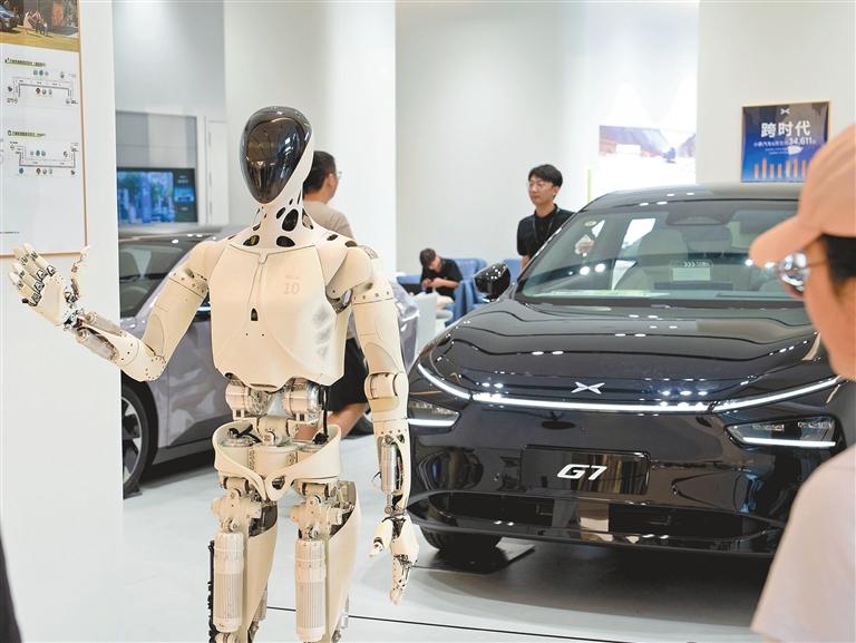 ? “Iron,” the humanoid robot developed by Guangzhou-based electric vehicle maker XPeng Motors, makes its dealership debut as a sales consultant at the company’s flagship store in the Qianhai MixC shopping mall in Nanshan District, Shenzhen, on Saturday. Stationed beside the newly launched G7, the robot did more than courteously lean forward to offer bottled water — it smoothly swung open car doors and invited customers to step inside. Its hands mirror human anatomy with 22 degrees of freedom, enabling it to delicately grasp objects, register subtle changes in weight and texture, and execute precision assembly tasks that could redefine industrial automation. XPeng plans to begin mass production of the robot in 2026. Weibo account “Tech AI Frontline” |