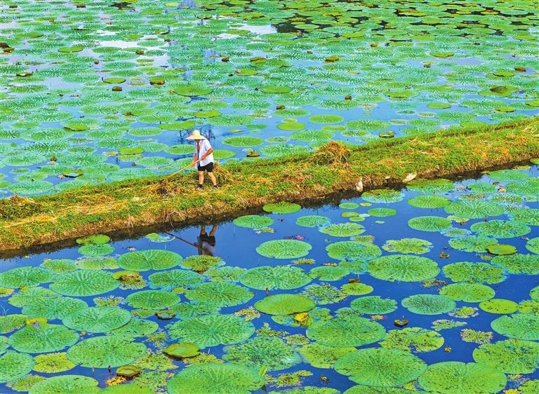 A farmer works at an organic farming base in Bacheng Township, Kunshan City, eastern China’s Jiangsu Province, yesterday, coinciding with the arrival of Major Heat. Major Heat, known as Dashu in Chinese, is the final solar term of summer, typically occurring between July 22 and 24. It marks the hottest days of the year. However, it is a significant time for farming in China as the intense sunlight, high temperatures, and frequent rainfall are highly beneficial for crop growth. During this period, farmers across the country are busy with agricultural production, including transplanting rice seedlings and managing crops.Xinhua |